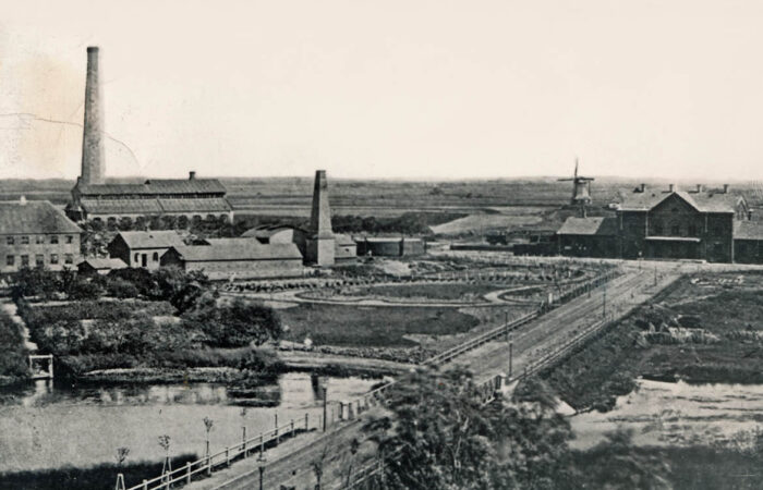 Fra tiden før elektricitetsværket blev anlagt. Den store plads mellem åen og stationsbygningen er nu museum og haveanlæg. Foto Sydvestjyske Museer