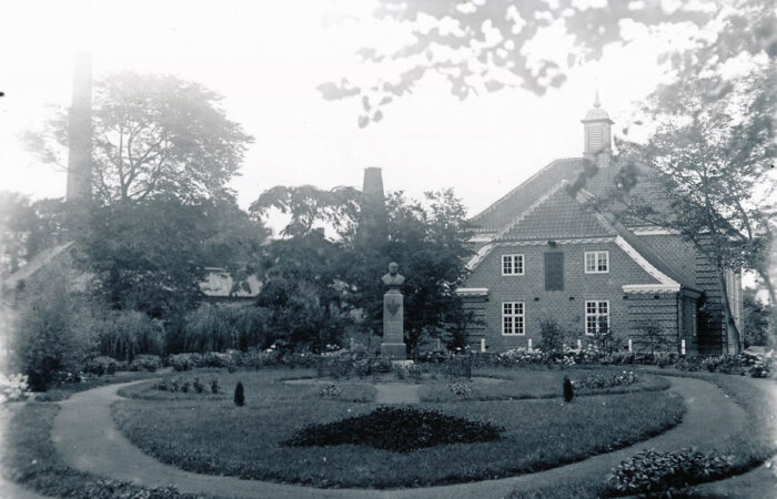 Ribes Elektricitetsværk set fra bagsiden, hvor haveanlægget ”Krügers anlæg” stadig ligger.